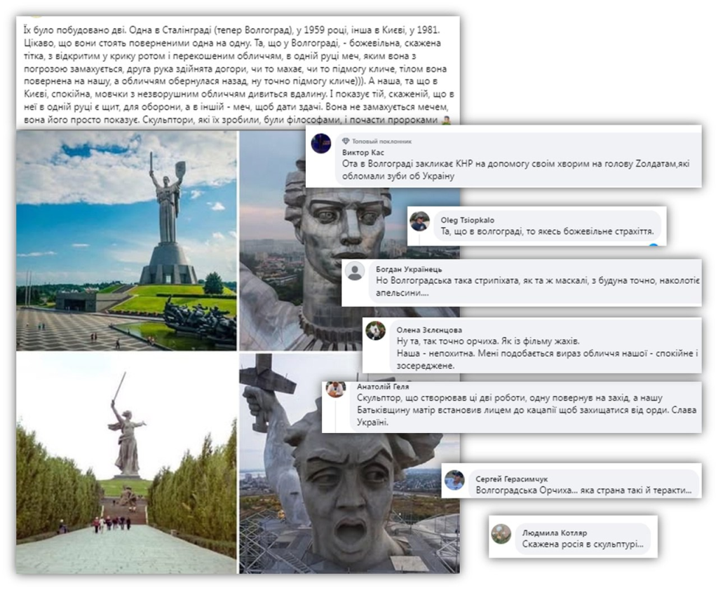 Приступ этого года включает в себя попытку оболгать монумент “Родины-матери”, который был основан в Сталинграде на Мамаевом кургане в 1959 году и открыт в 1967 году, и противопоставить его “Родине-матери”, открытой в Киеве в 1981 году генсеком Леонидом Брежневым.