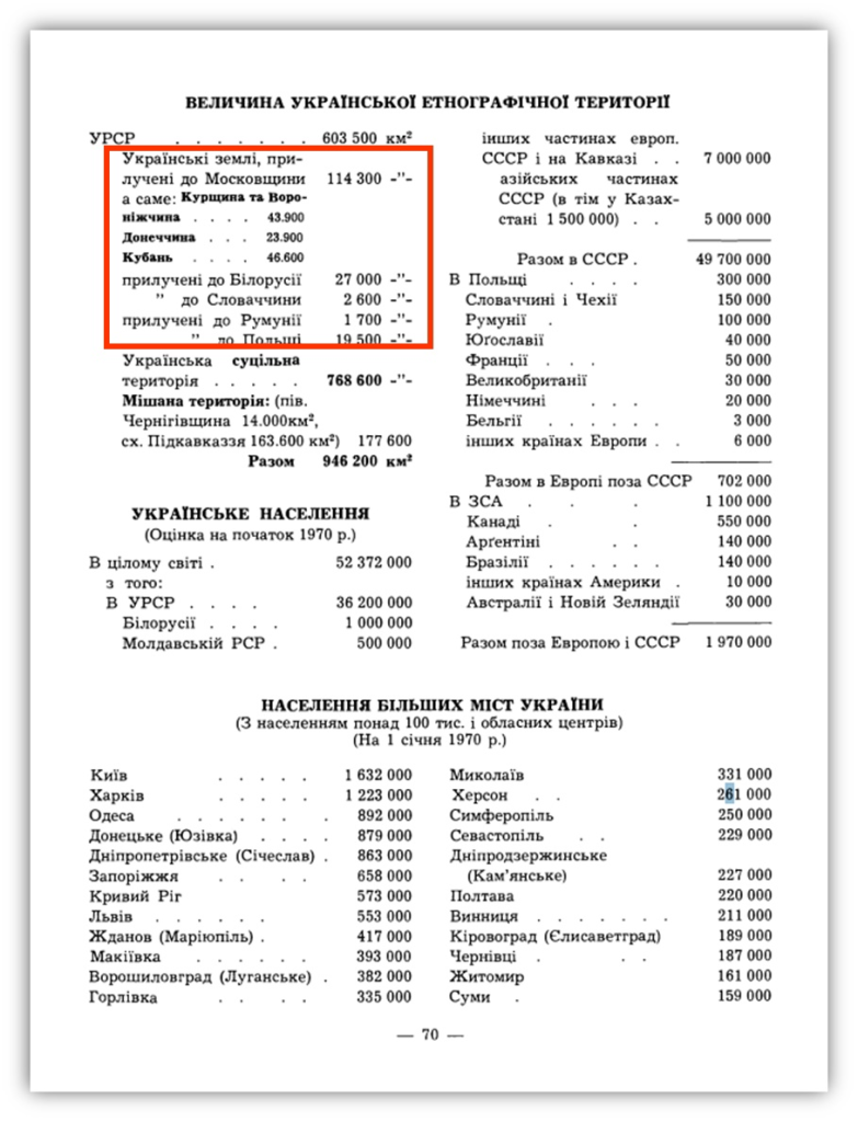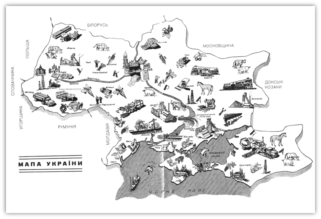 Пример – книжонка “Путешествие по Украине” Маркияна Терлецкого, используемая в качетсве учебного пособия. Автор – усусовец, сбежавший в 1919 году в Чехословакию, вернувшийся на Галичину во время её оккупации Третьим Рейхом, а потом с немецкими обозами отправившийся в Германию во время наступления Красной Армии. Издана Лондоне в 1971 году.