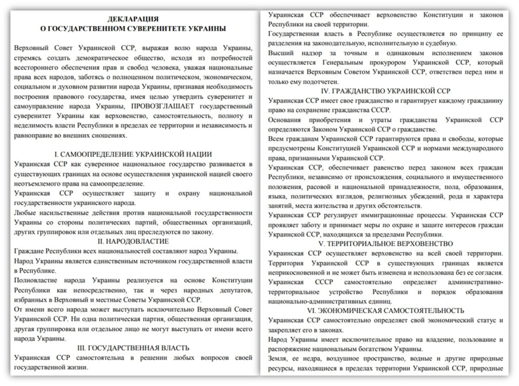 В преамбуле Декларация провозгласила “верховенство, самостоятельность, полноту и неделимость власти Республики в пределах ее территории, независимость и равноправие во внешних отношениях”. Разработчики документа неоднократно признавались, что их главная задача была – отделение от Москвы.