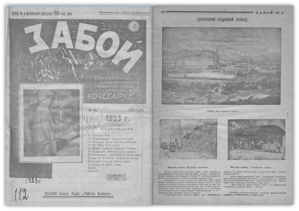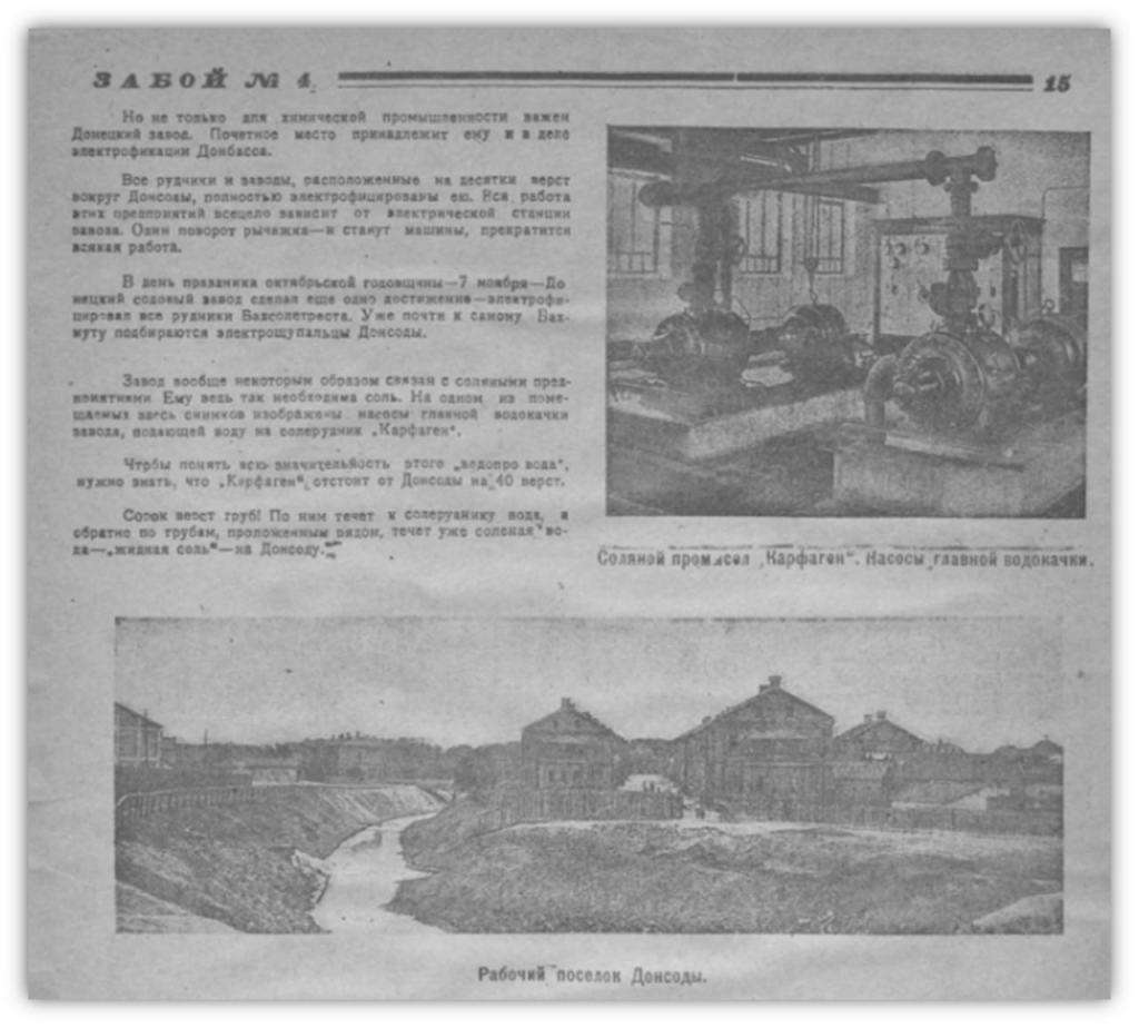 Журнал “Забой” №4 за 1923 год разместил статью, рассказывающую о работе Донецкого содового завода, расположенного в Лисичанске, который ещё даже не получил статус рабочего посёлка (произойдёт это через 2 года).