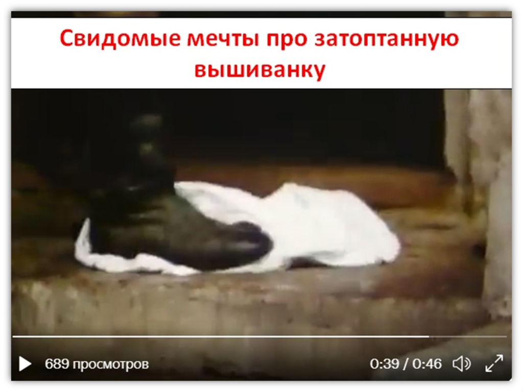 Сцена с растоптанной НКВДдистом вышиванкой, конечно, должна впечатлить эмоционально неустойчивых барышень, собственными слезами отбеливающих грубую хлопковую ткань сельских вышитых сорочек. Но не более того. Такого рода одежда была привычной и нормальной на всей территории СССР, генетически кодом украинской нации ее ещё не назначили. Следовательно, кровожадно топтать эту простую одежду, чтобы сломить гордый украинский дух, никто бы не стал. Смысла не было.