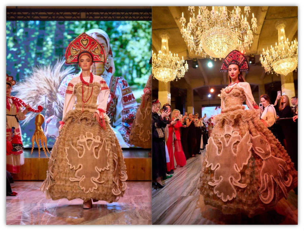 Ректор отторгает советский период в истории нашей страны и делает из студентов манкуртов? Как, кроме глумления над государственной символикой, объяснить появление стилизованного двуглавого орла на спідниці девицы-манекенщицы рядом с осьминогом? И почему образы из якобы русских коллекций так сильно напоминают украинскую уродину с серпом, отрезающим голову русскому солдату, в известном ролике с экстремистским содержанием?