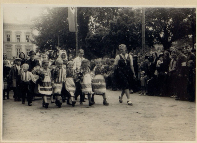 Но редко можно встретить снимки, которые отражали бы ещё и будущее поколение. 18 июля 1943 года по улицам и площадям Львова прошлись не только эсэсовцы и полицаи Украинской вспомогательной полиции. Вместе с ними маришровали дети — в вышиванках, которыми сейчас принято хвастаться.