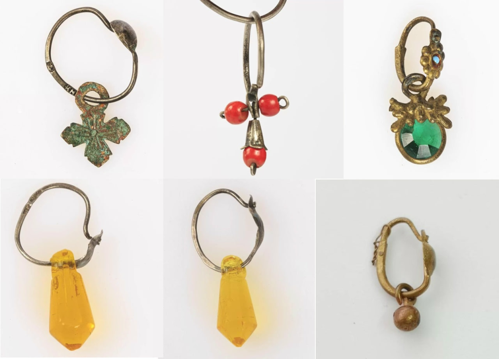 Серебряные серьги частично содержат клейма Костромской пробирной палатки конца XIX века, костромского окружного пробирного управления и неизвестных мастеров.