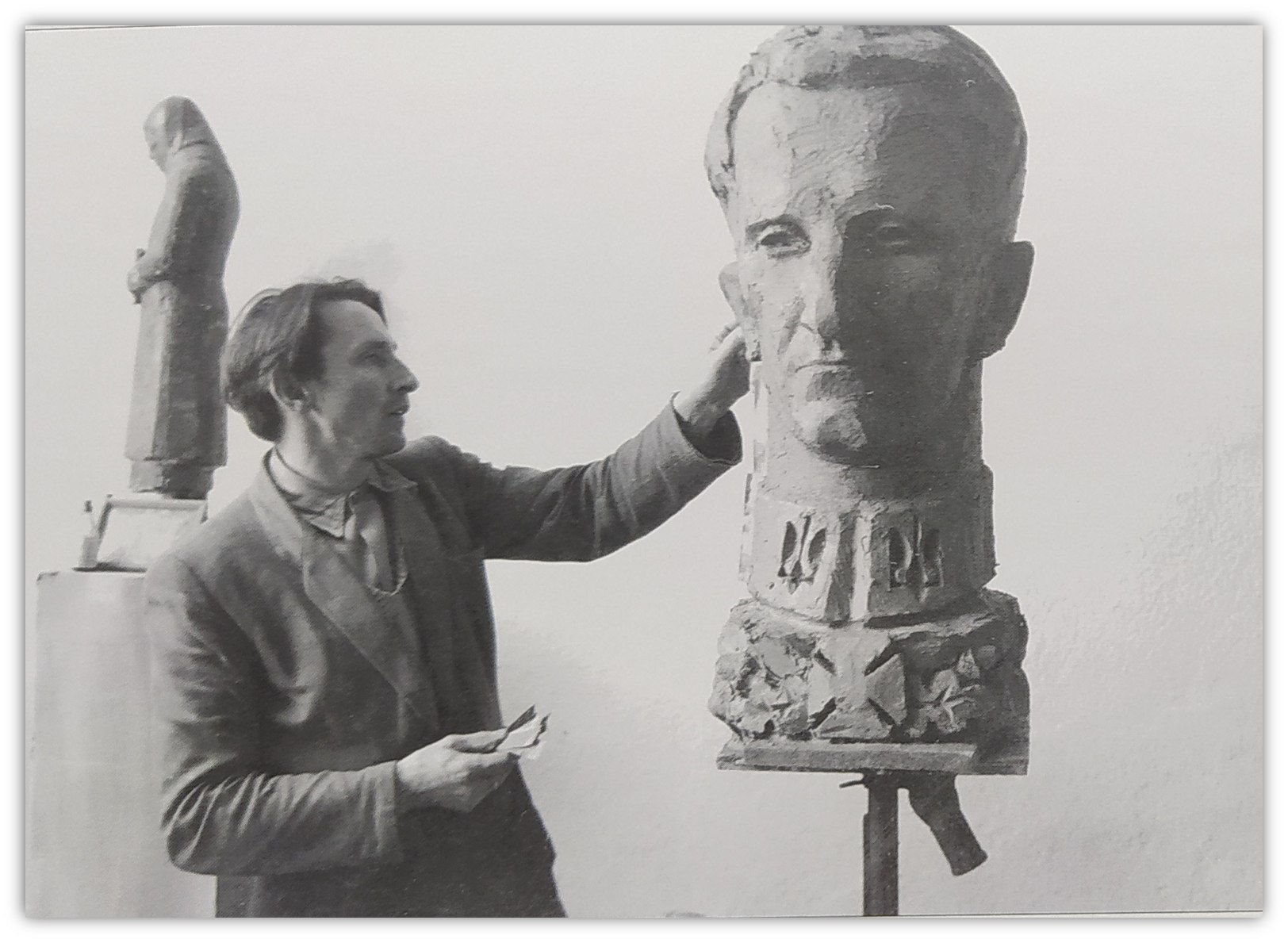 Скульптор Михайло Черешневский ваяет мелкого украинского фюрера, которого тогда называли Тарасом Чупринкой, так как трусили представлять реальное имя ничтожного нремецкого прислужника Романа Шухевича.