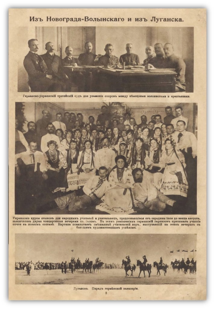 В частности, в 11 номере рядом с фотографиями императора Вильгельма и Скоропадского в Эссене размещена групповой снимок, который на разных украинских ресурсах подписывается так: